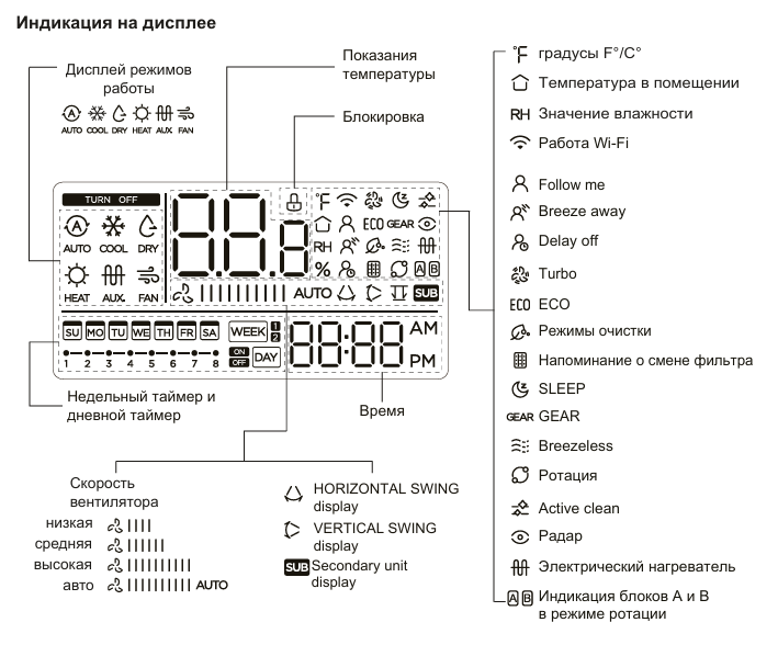 - Таймер (время включения/выключения, недельный таймер)